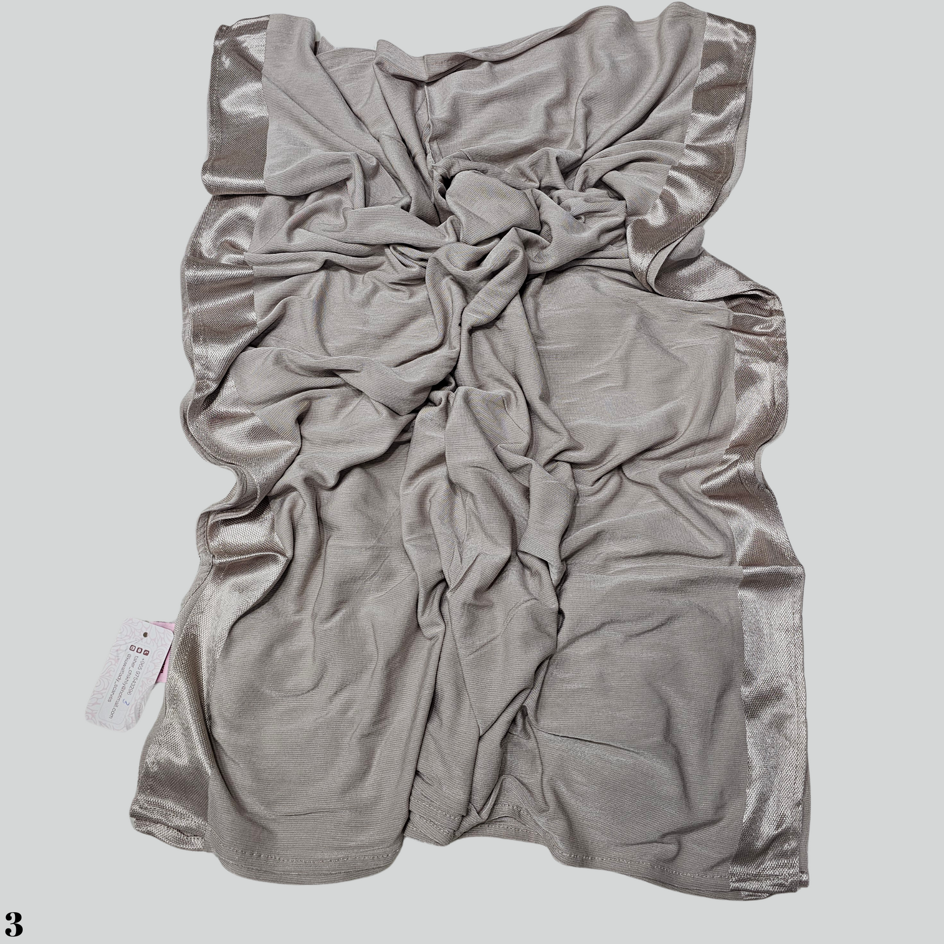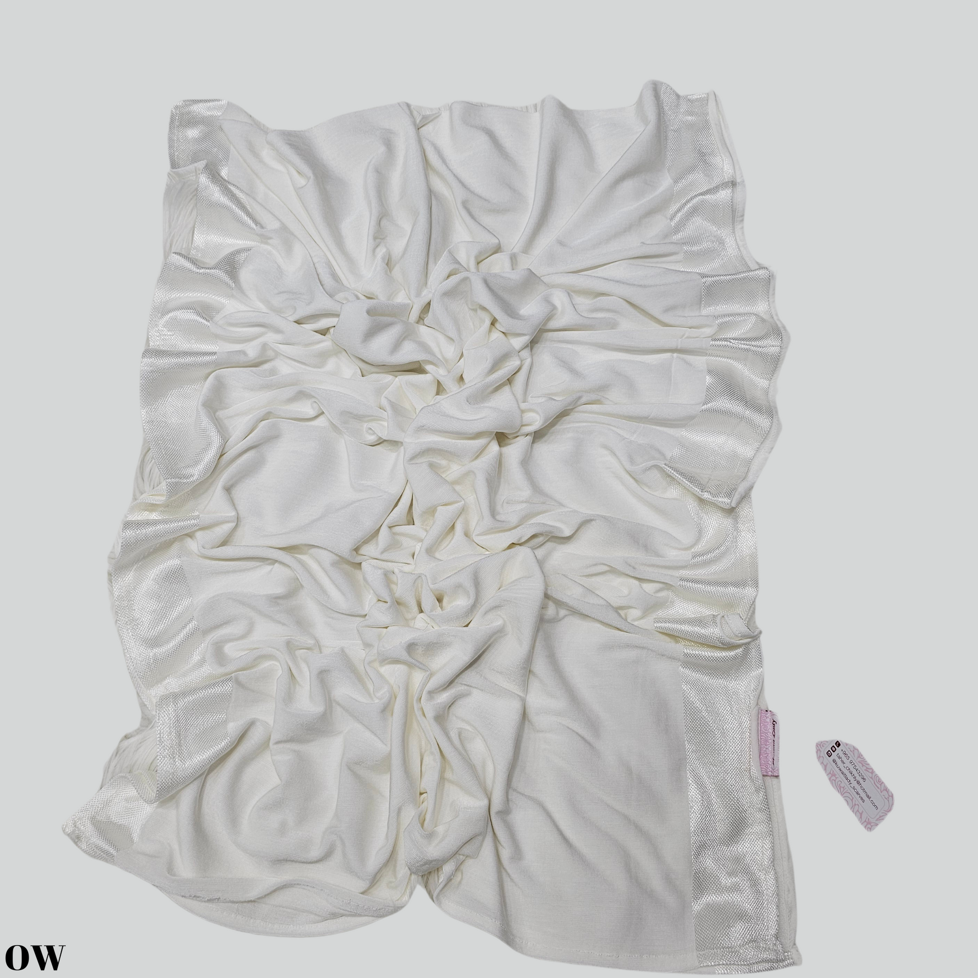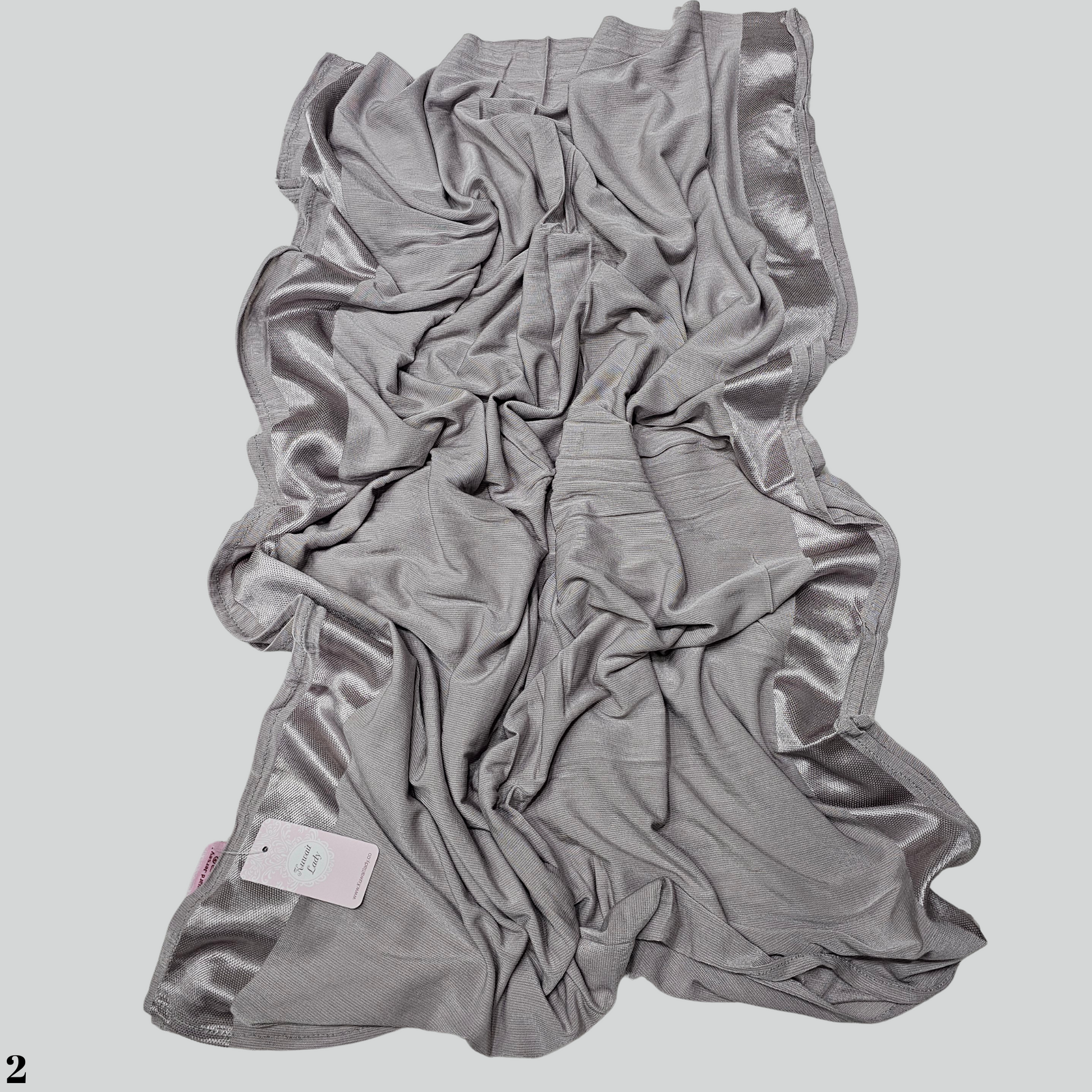 مزيجٌ سلس من القطن الناعم والساتان الأنيق، يُقدّم هذا الوشاح مزيجًا مثاليًا من الراحة والأناقة. يُضفي شريط الساتان الرقيق لمسةً راقية، ما يجعله الخيار الأمثل لإطلالةٍ أنيقةٍ ومريحة.