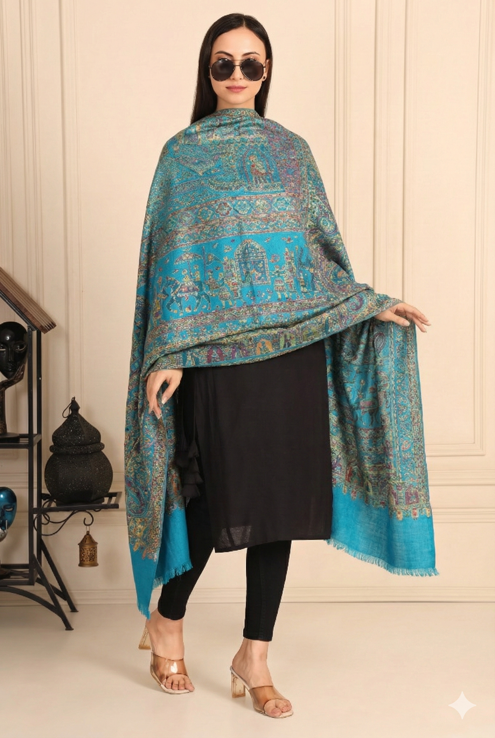 شال كشميري مطبوع بنقوش هندية