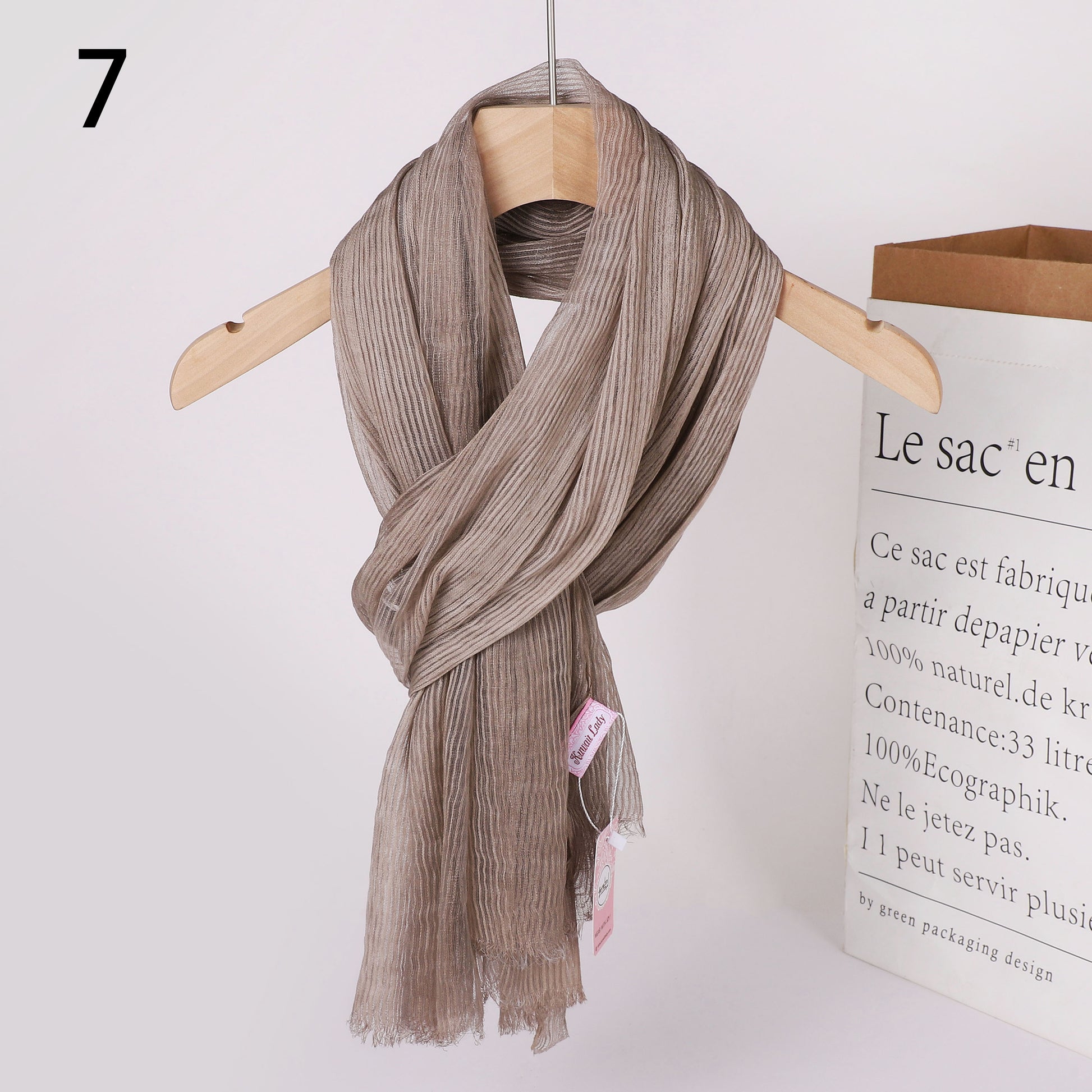 The Whisper Stripes Hijab brings together the elegance of fine texture and the comfort of feather-light drape. Designed with delicate mukhattat (striped-textured) weaving, it captures the beauty of natural flow and effortless grace — making it one of the most loved picks this season.