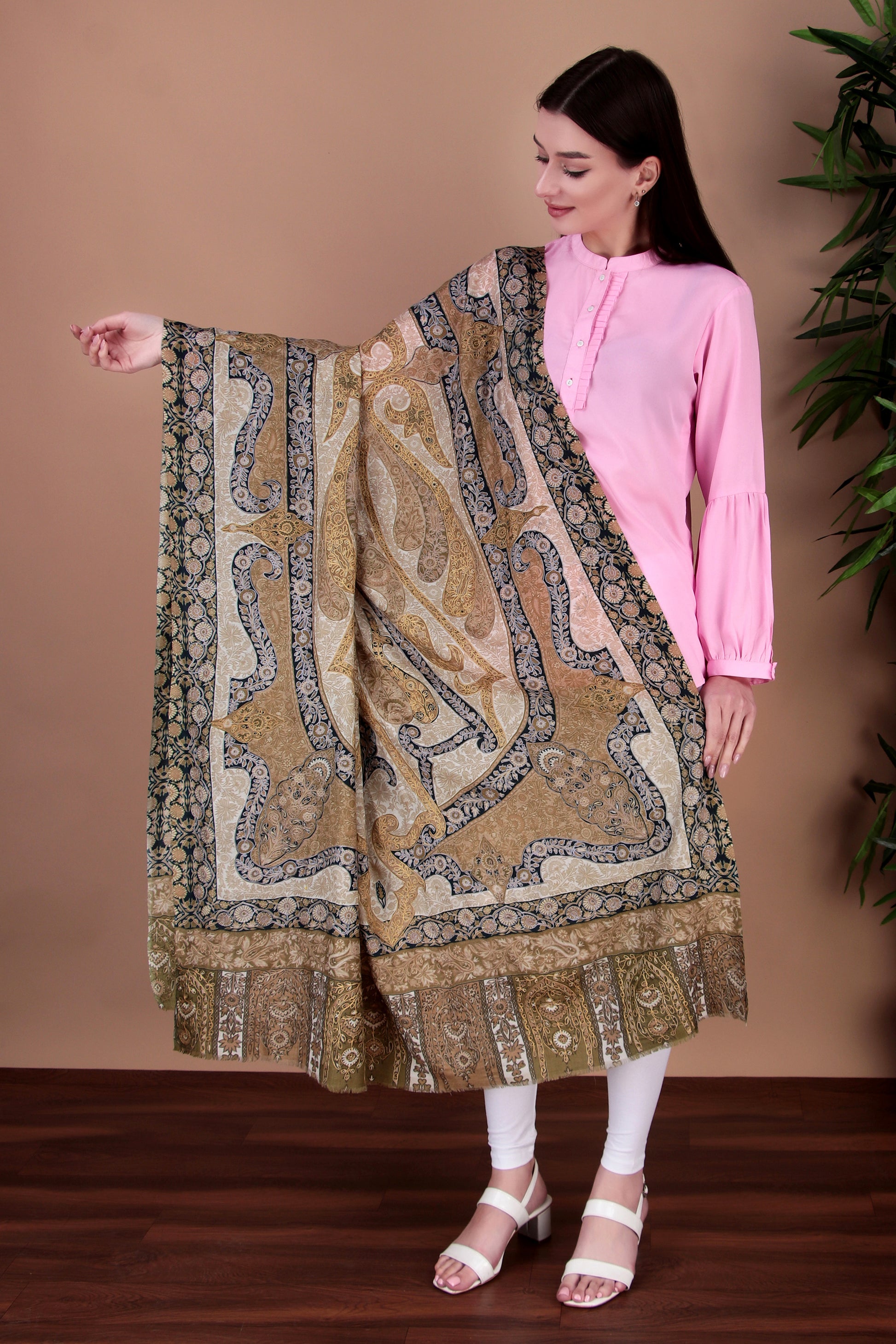 Kalamkari Pashmina Blend Shawl – Light Design