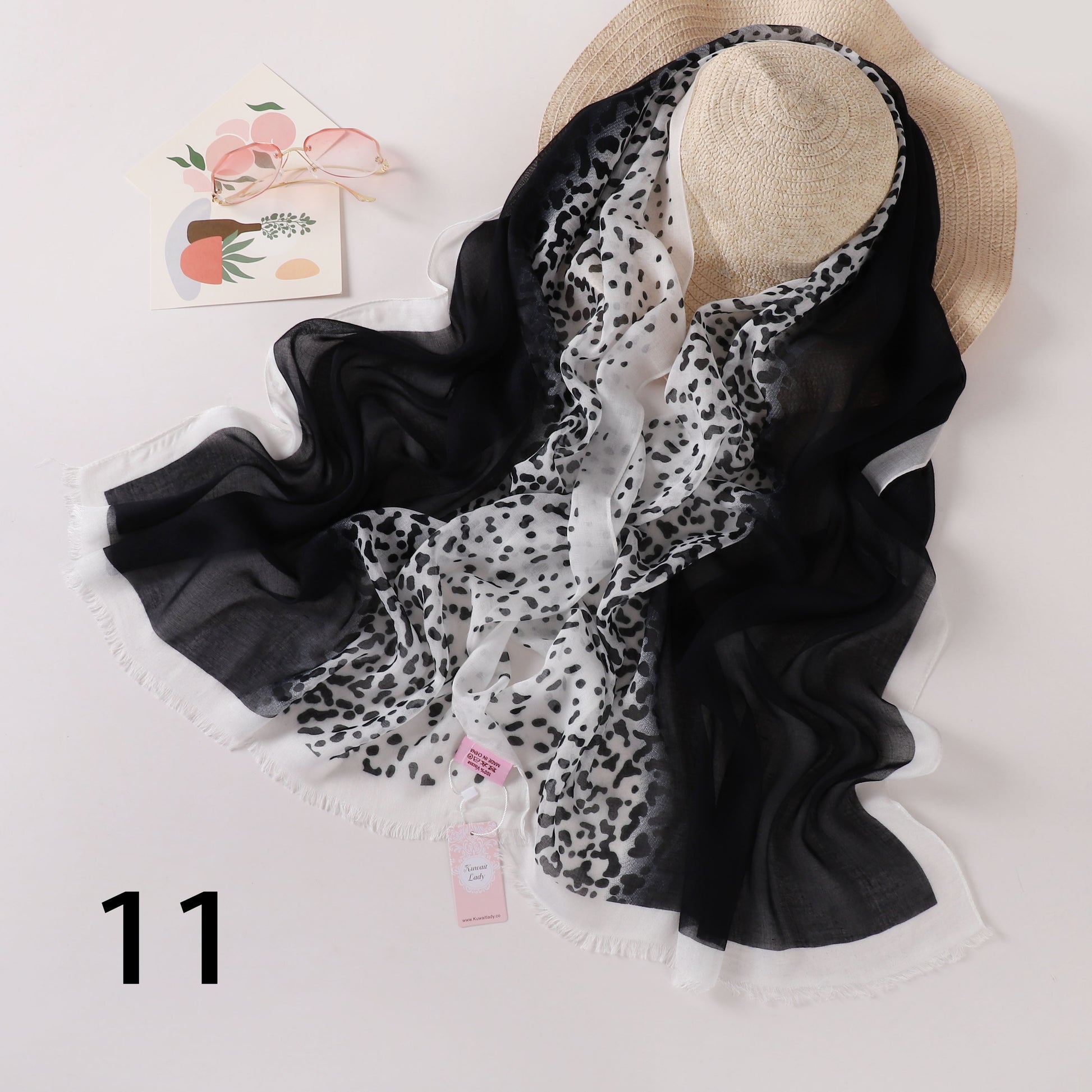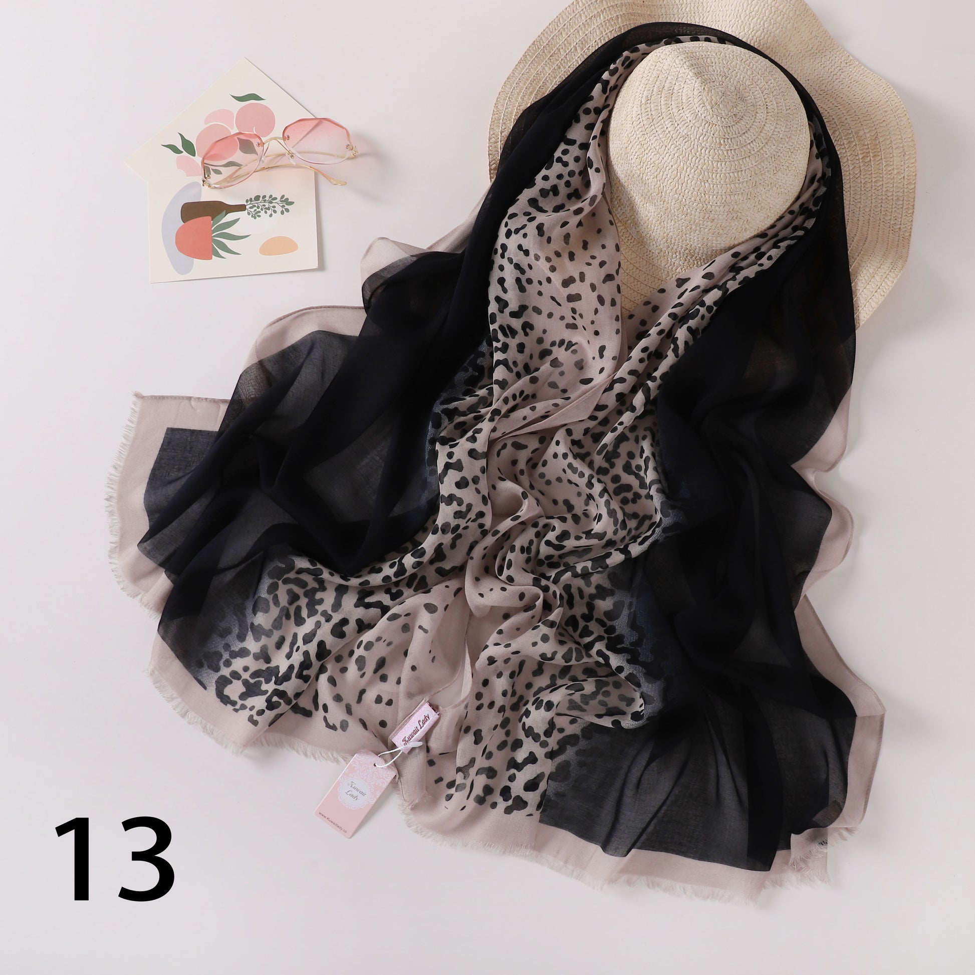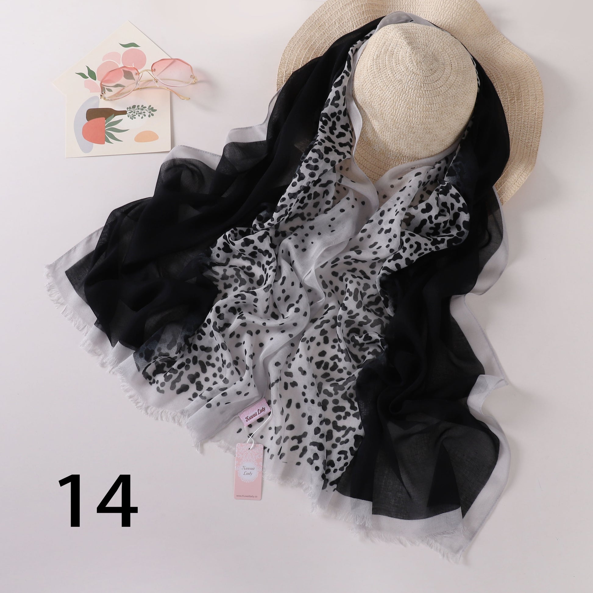 Make a bold statement with the Split Style Tiger Fade Linen Scarf, where contemporary design meets cultural flair. This unique scarf features a captivating combination of half-printed and half-plain sections adorned with eye-catching tiger marks, ensuring you stand out effortlessly.