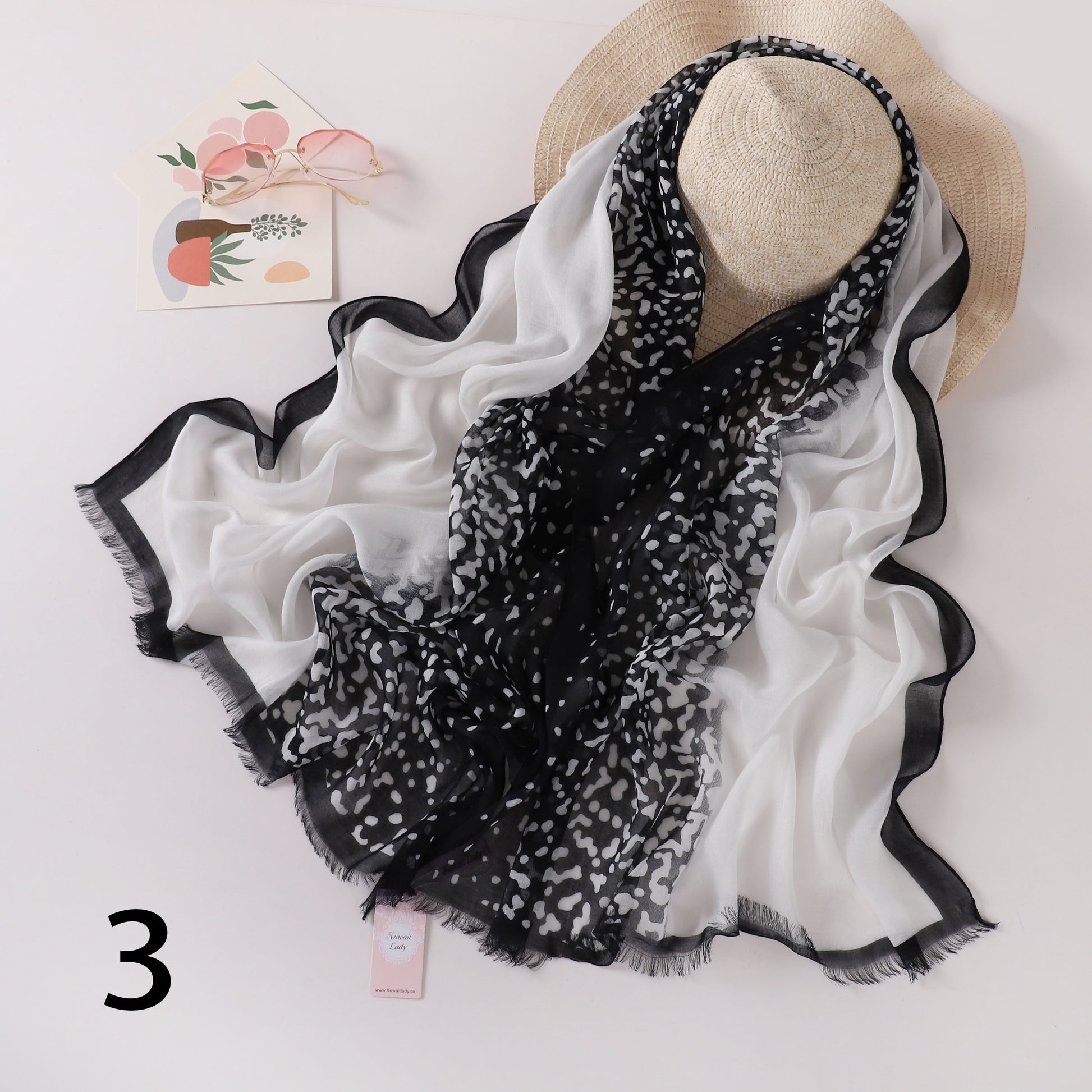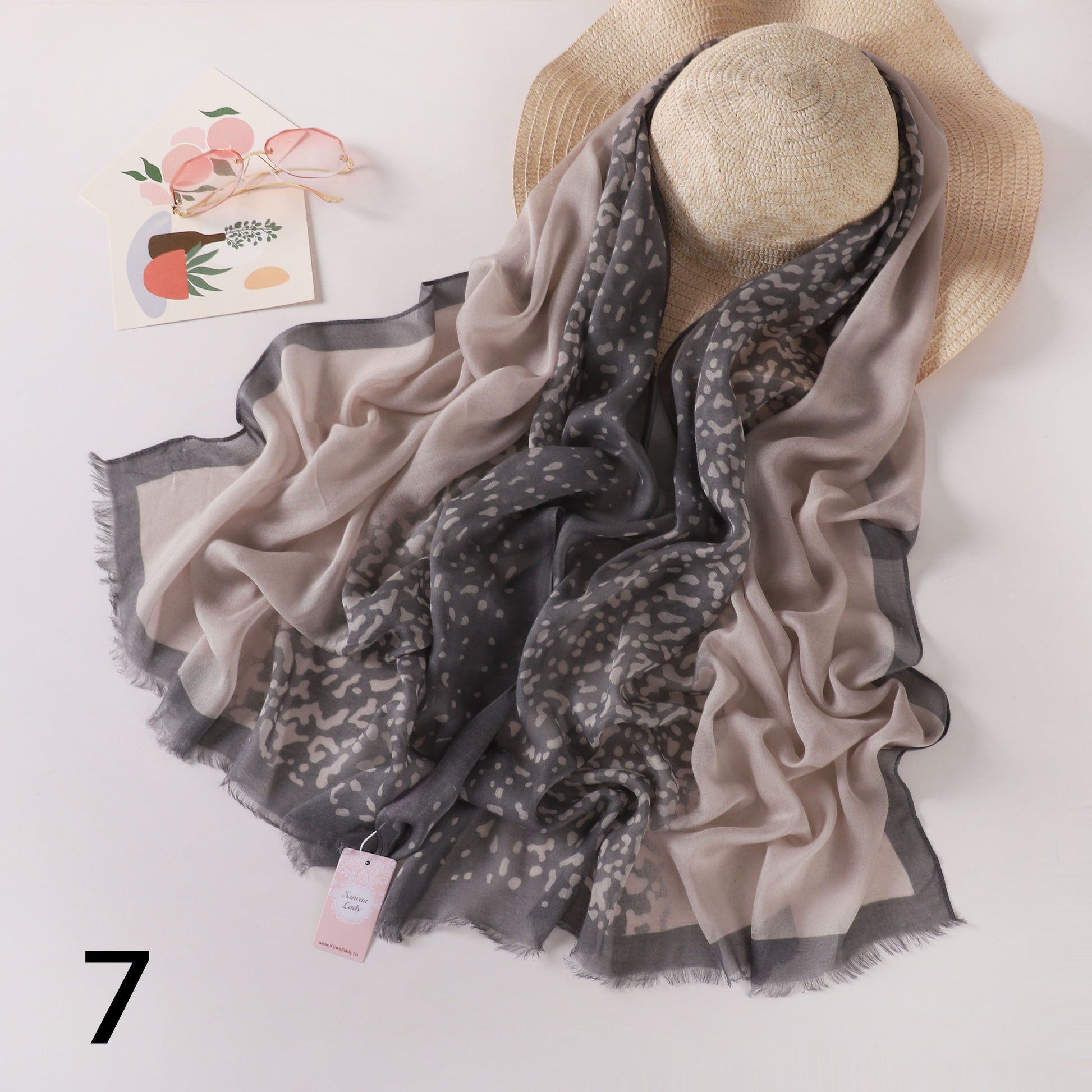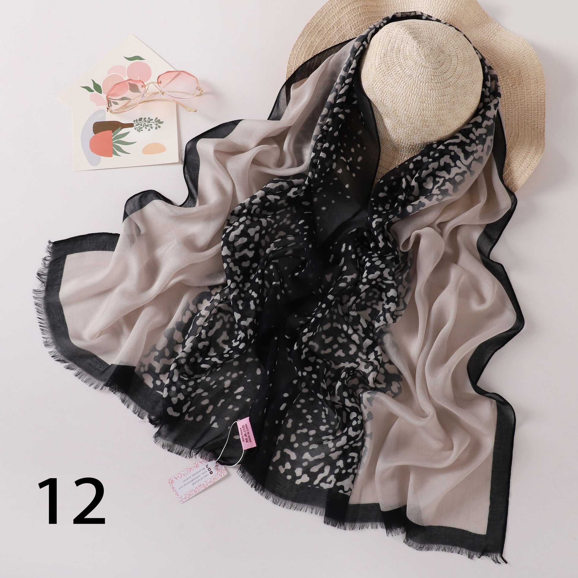 Make a bold statement with the Split Style Tiger Fade Linen Scarf, where contemporary design meets cultural flair. This unique scarf features a captivating combination of half-printed and half-plain sections adorned with eye-catching tiger marks, ensuring you stand out effortlessly.